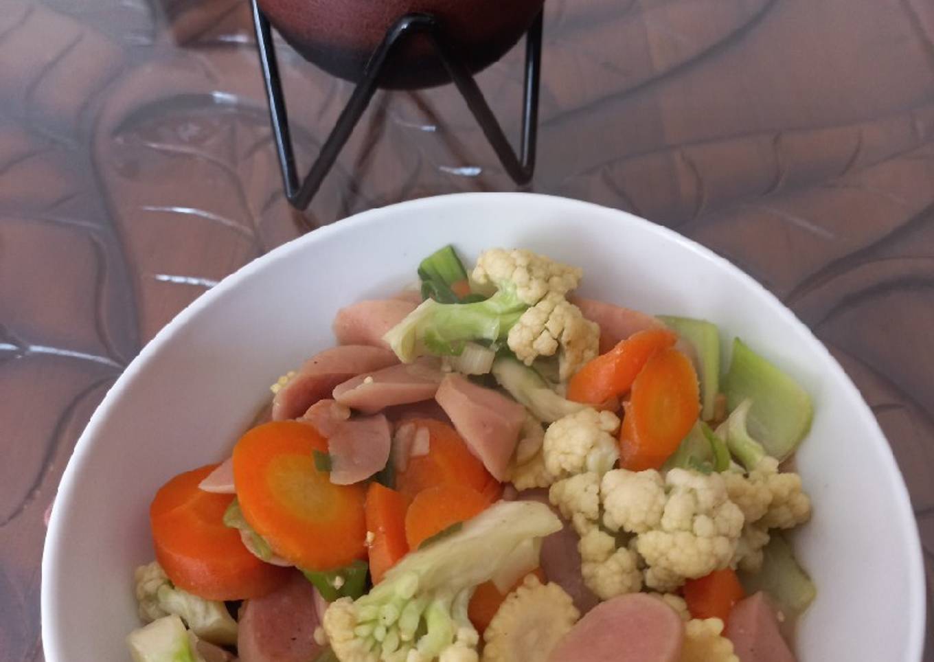 lagi ada bahan2 sayur, dan juga sosis, markimas, mari kita masak