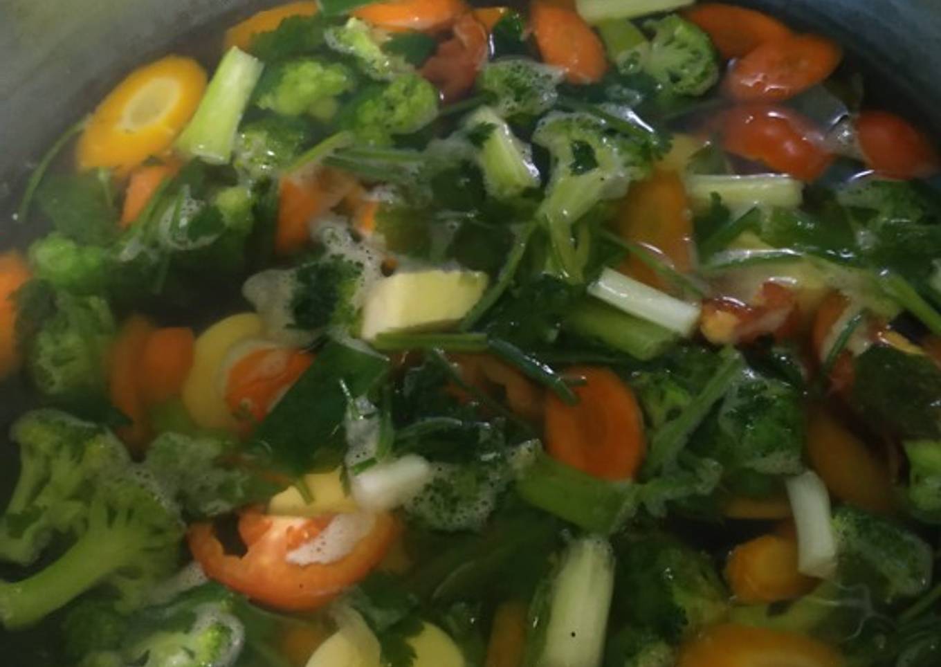 - Jika sudah harum masukan air, kemudian masukan wortel. Tusuk wortel dengan garpu jika sudah empuk masukan brokoli,daun bawang seledri dan tomat, berikan penyedap rasa cicipi Rasa. Masukan Sapo tahu, tunggu hingga mendidih jika sudah mendidih matikan kompor.
