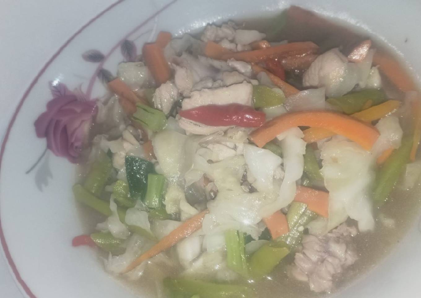 - Setelah ayamnya setengah mateng masukkan sayuran mulai dri yg keras terlebih dahulu, masukkan air, saos tiram, garam, penyedap,