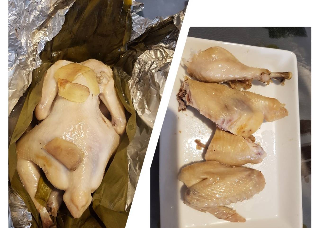 - Bungkus ayam dg aluminium foil dan Kukus 1,5 jam...periksa dg membuka dan tusuk ayam, kl sdh empuk selesai n matang