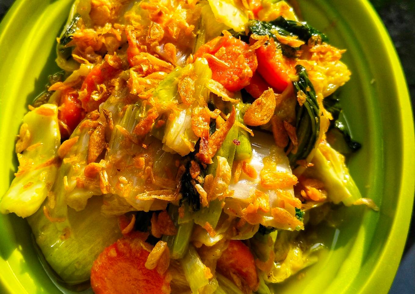 - Tumis sayuran,beri kaldu penyedap,gula dan garam. Cek rasa.