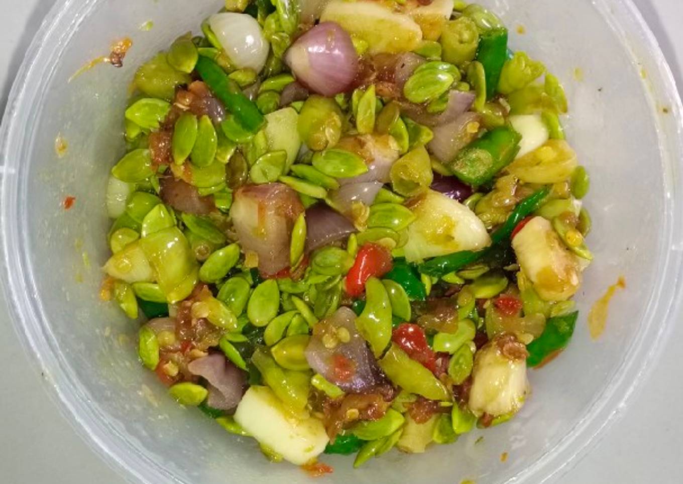 - Semangkuk kecil petai cina kupas
