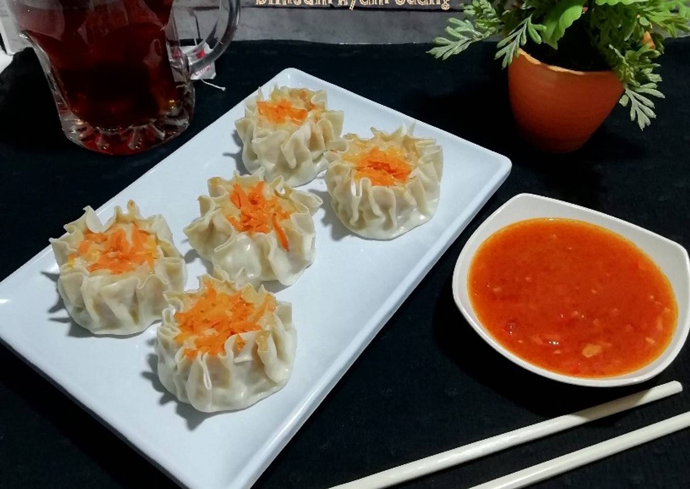 -Sajikan Dimsum dalam keadaan panas hangat dengan sausnya.