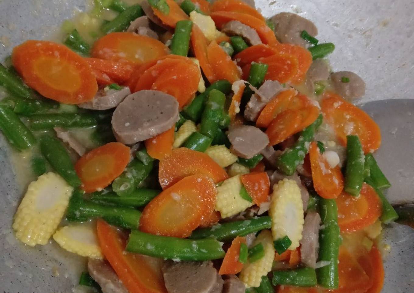 - Masukkan wortel, selang 5 menit masukkan buncis dan baby jagung. Kalo asat bisa ditambahkan air sedikit lagi ya.