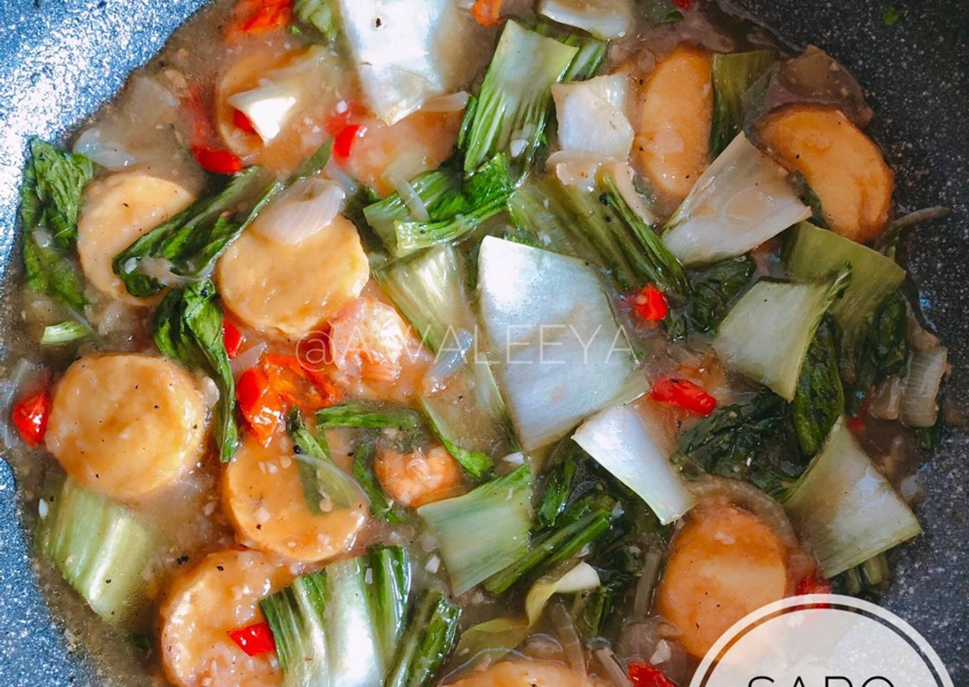 - Masukkan pakcoy dan tofu tambahkan larutan maizena masak hingga mengental dan sajikan