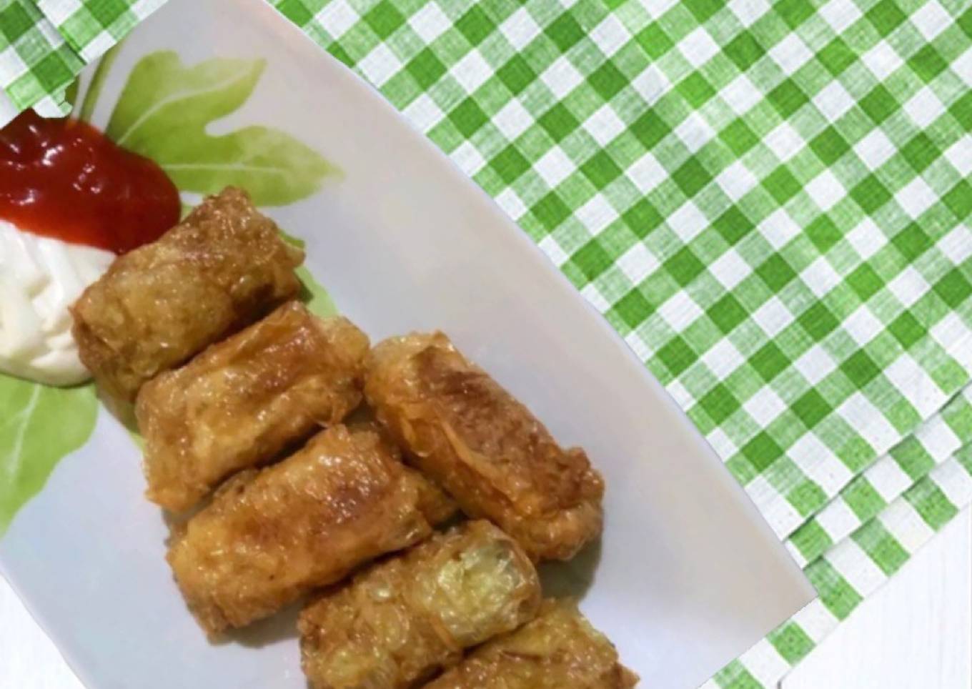 - Masukan adonan kedalam kulit tahu, lipat seperti membuat lumpia