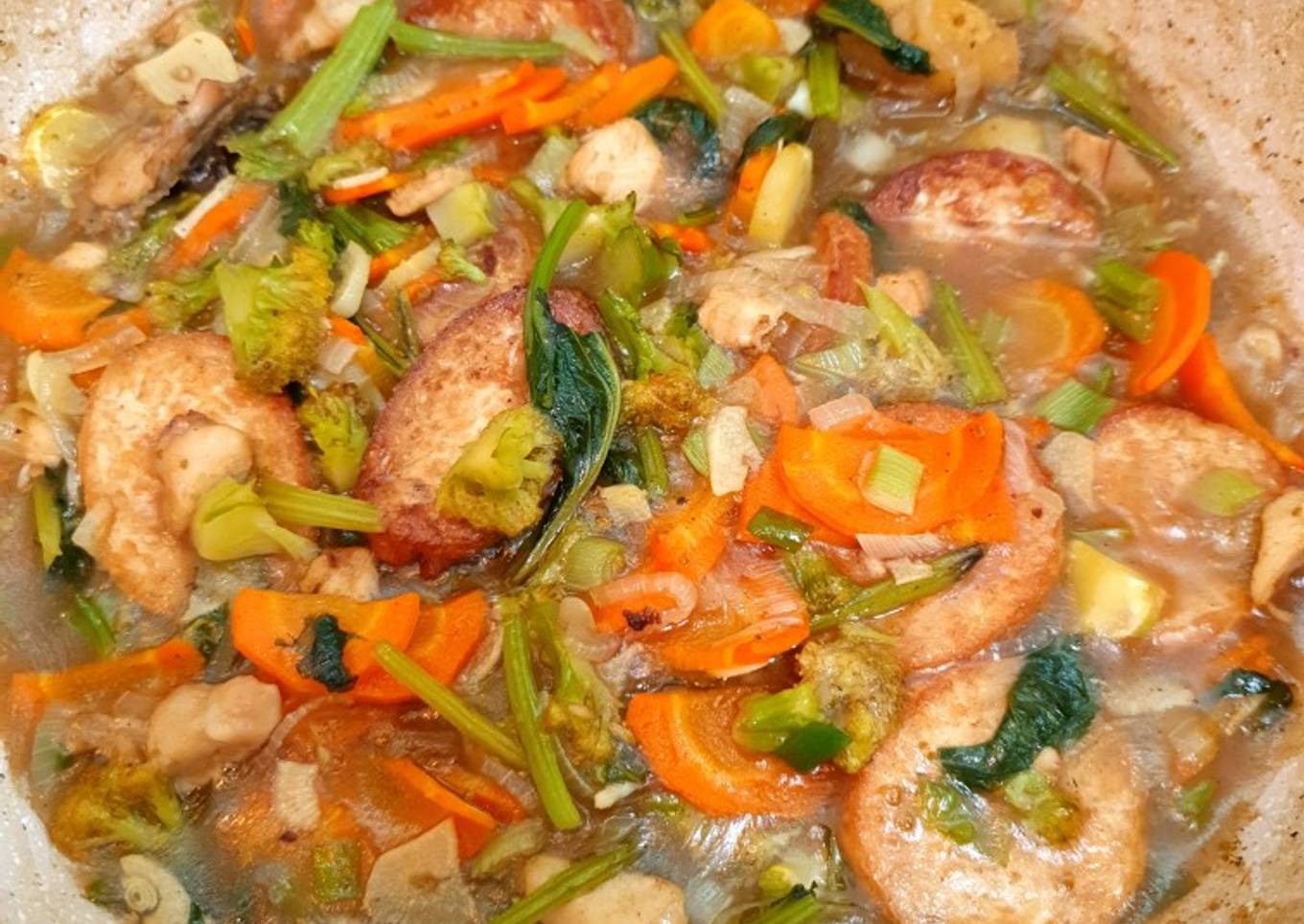 - Masukkan semua sayur, aduk sampai sayur terlihat layu