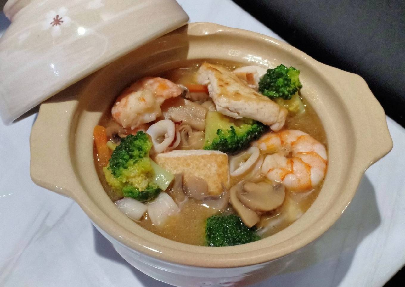 - Masak hingga udang dan cumi matang. Tambahkan tahu. Terakhir tambahkan maizena yg sudah diparutkan dengan seidkit air.